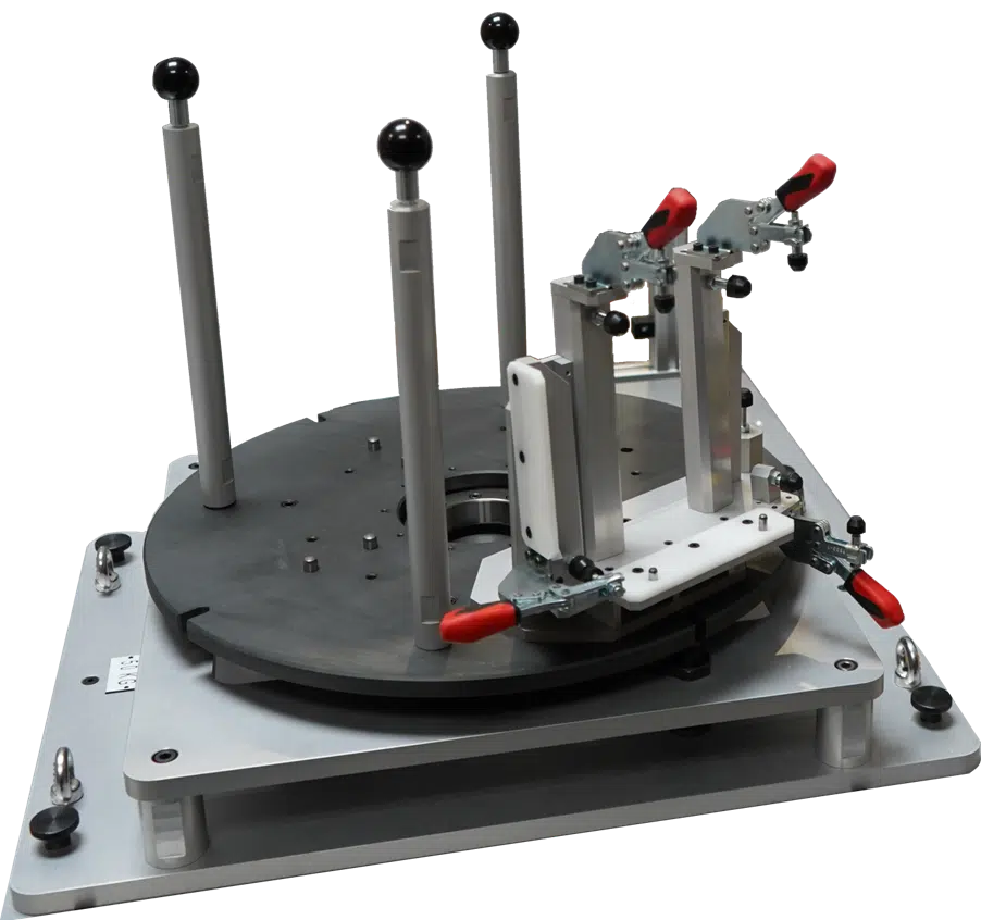 • A system of quick-change tooling developed specifically for precise positioning of parts to be marked.