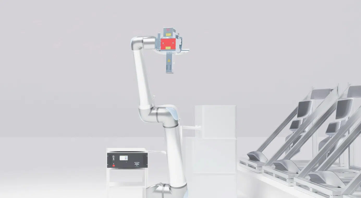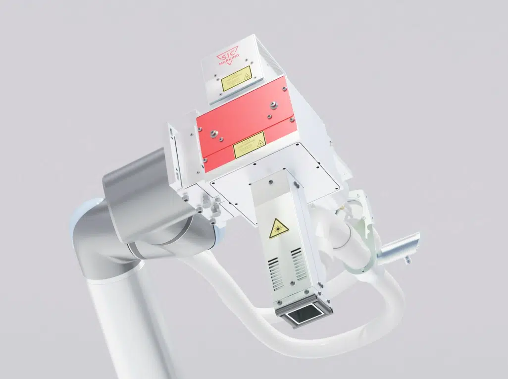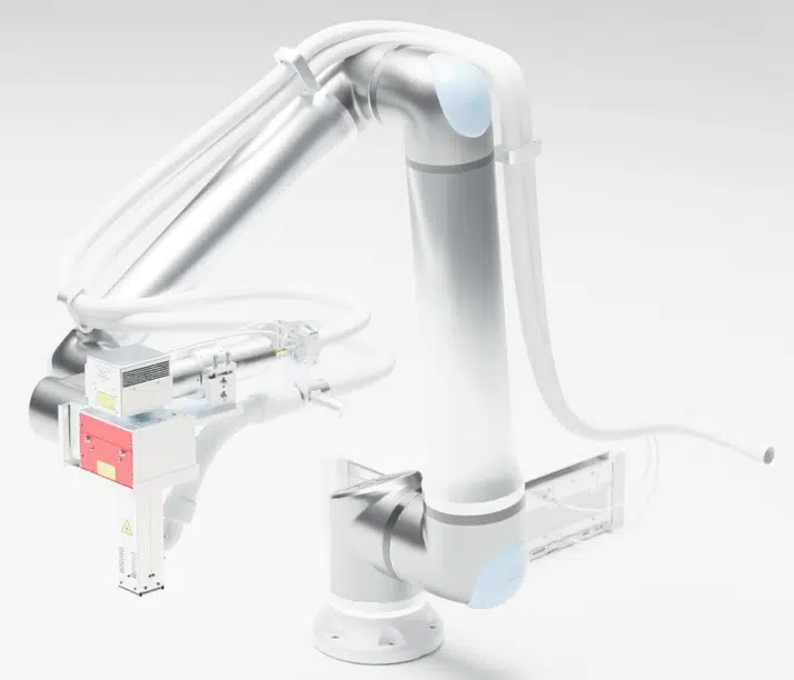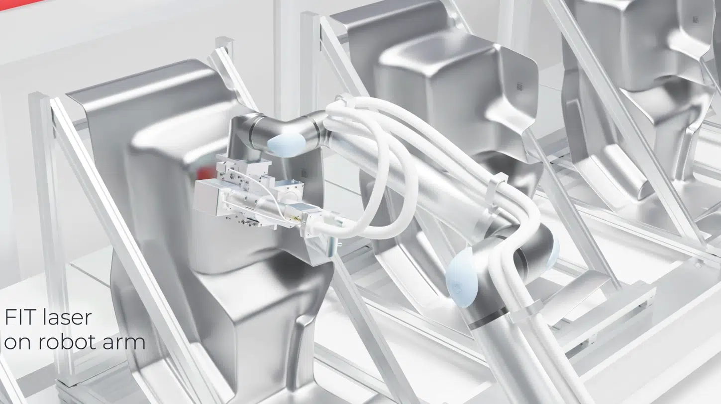 • Mounted on a robot arm: Achieve total freedom in how and where your parts are marked. The F.I.T Laser can be installed directly on the end of a robotic arm, making it ideal for complex, multi-angle marking applications. It moves with the robot, enabling dynamic positioning and marking on the move.