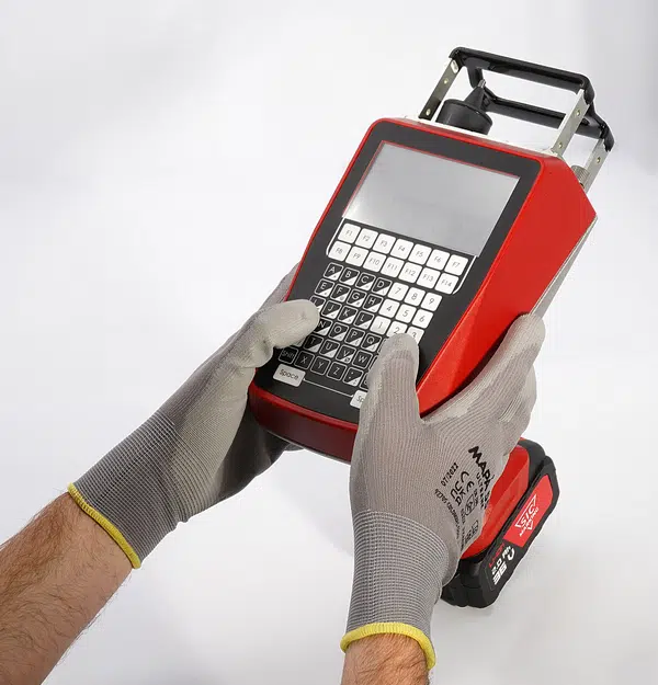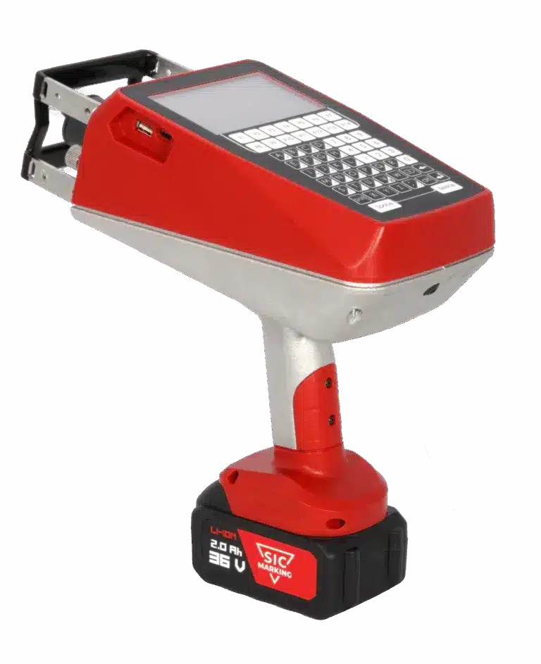 This portable marking machine has three interchangeable face plates, adapting to all industrial environments.