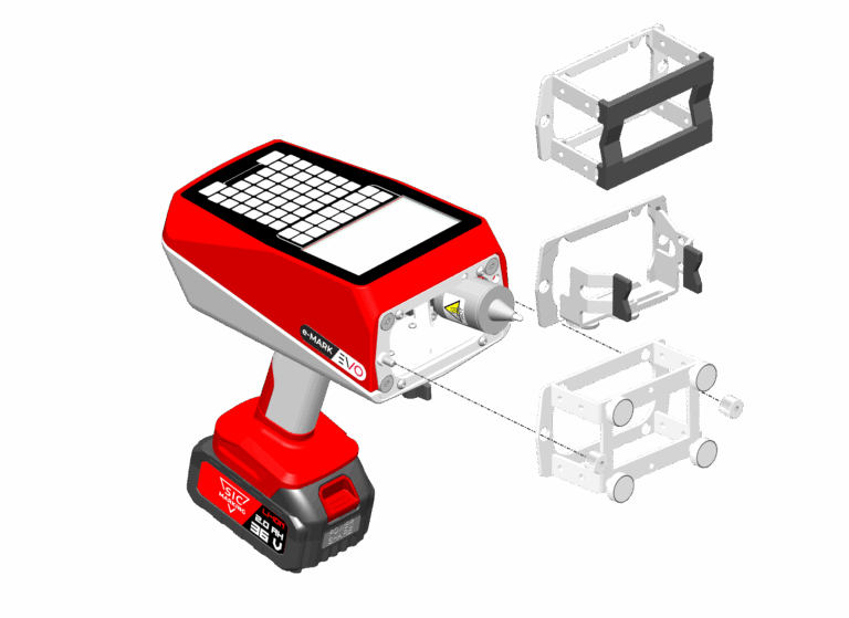 The E-MARK EVO is a portable, cordless, all-in-one dot peen marking machine capable of marking all types of materials, from plastic to treated steel, up to 62 HRC.